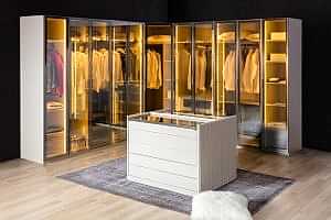 Birçok insanın hayali giyinme odası içerebilecek kadar büyük bir eve sahip olmaktır. Tamamıyla kişisel kıyafetlere ayrılmış bir oda entelektüelliğin doruk noktası gibi görünmektedir. Ama bu, sadece çok az ev sahibi için mümkündür. Giyinme odası oldukça kişisel bir yerdir ve mükemmel olması için de odanın gerçekten sizin zevkinizi yansıttığından emin olmanızı sağlayacak kişisel stilinizi ve dolap ihtiyacınızı göz önünde tutmak önemli olacaktır. Bir ev içinde giyinme odası işlevsel bir özellik taşır ve bu yüzden amaçlara uygun kullanışlı ve işe yarar olarak tasarlanmış olmalıdır. İçinde yürüyebileceğiniz giyinme odalarından küçük çaplı odalara kadar pek çok seçenek vardır ve tarz ve depolama ile ilgili seçenekler sahip olunan alana bağlıdır. Odanın genişliğine bağlı olarak da makyaj masası gibi mobilyalar alana şıklık katabilir ve aynalar genellikle daha geniş bir etki yaratarak, ışık eklemek için parlak bir fikirdir. Elbette, ortama dâhil her etmen odanın boyutunu yansıtmalıdır ve odanız ideal durumda üstünüzü değiştirmek ve güne hazır olmak için toplu ve sakinleştirici bir etki yaratmalıdır.